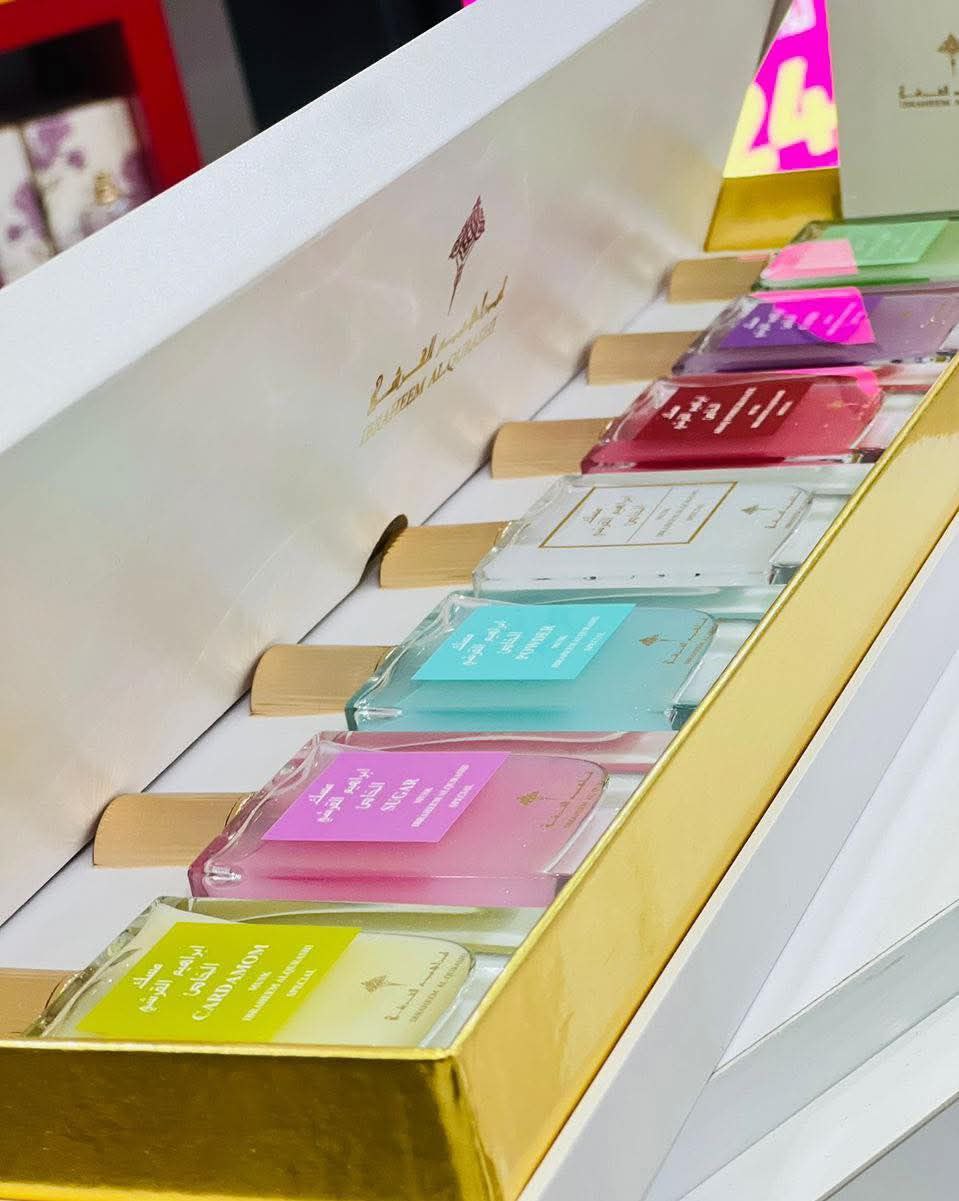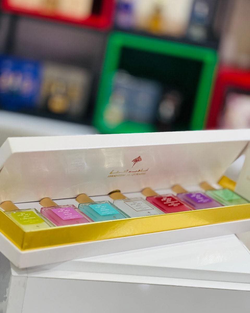 مجموعه ابراهيم القرشي مكونة من سبعة عطور مسك بالنكهات المختلفة للمجموعة الكاملة الاكتر مبيعا في بوكس واحد حجم 30 مللي